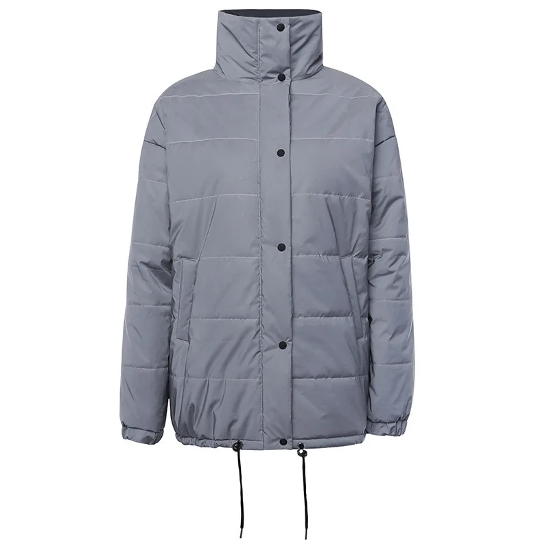 New Hot sale2019new winter jacket women reflective fabric solid thick Full sleeve long section high collar zipper casual Cotton coat