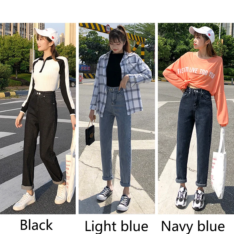 Images of New High Waist Jeans Women Autumn Slim fit blue Casual Loose Wide Leg Jeans Trousers Striped Palazzo Pants Retro Little pants :