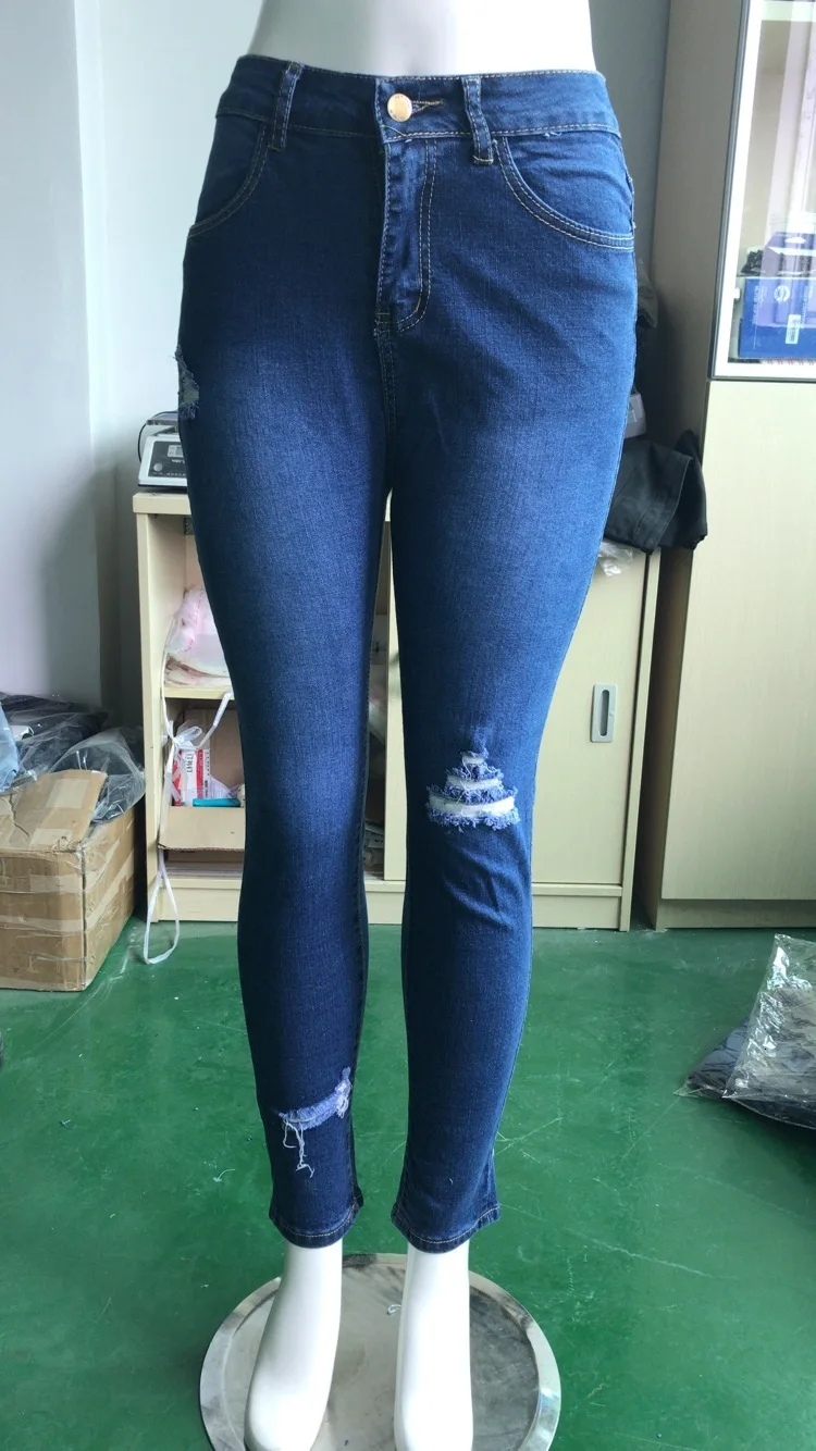 Images of Ripped Hole fashion Jeans Women High Waist Skinny Pencil Blue Denim Pants Woman Washed Beached elastic Trousers Female Plus Size :