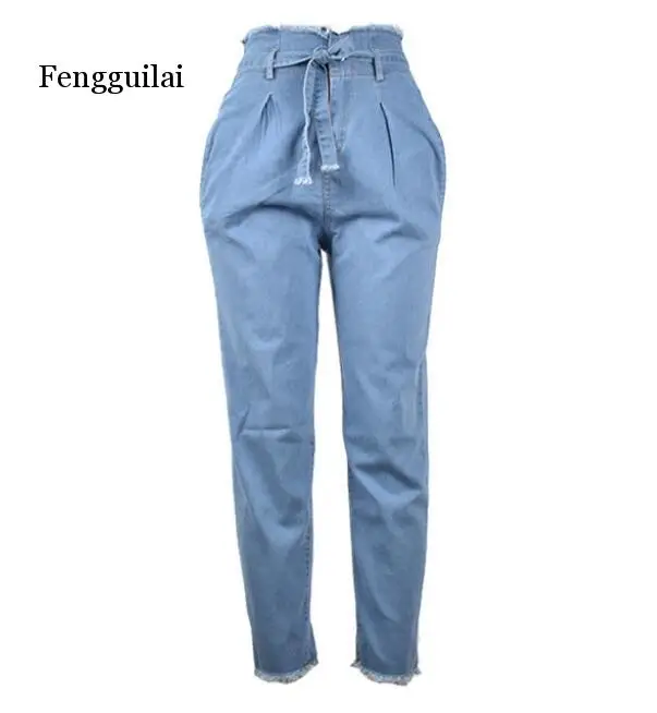 Best Offer Europe And America Quality No Bombs High-waisted Belt Straight-Cut Jeans Vintage Women Trousers Denim