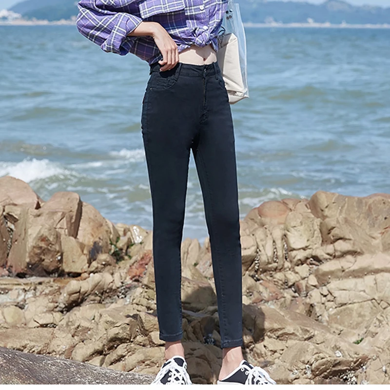 New High quality ladies jeans Slim-fit pants Cotton Women's Washed Jean Pencil Casual Leggings Jeans Skinny Stretch trousers Black