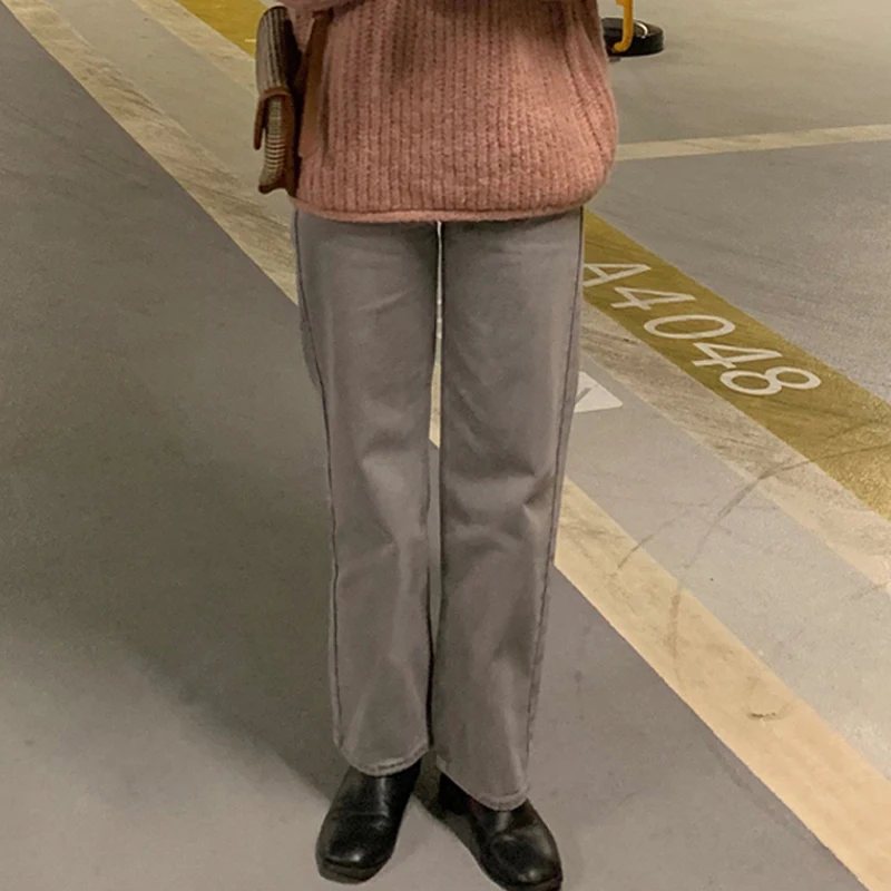 Images of SHIJIA 2019 Ladies Trousers Women Autumn Winter Denim Pants Casual Solid Wide Leg Pants High Waist Loose Female Straight Jeans :